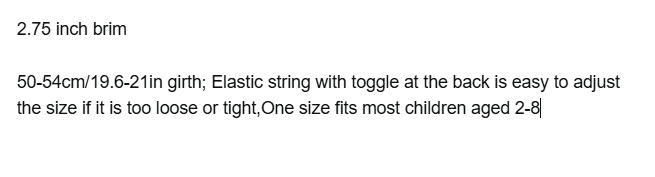 - 50-54cm/19.6-21in girth; Elastic string with toggle at the back is easy to adjust the size if it is too loose or tight,One size fits most children aged 2-8